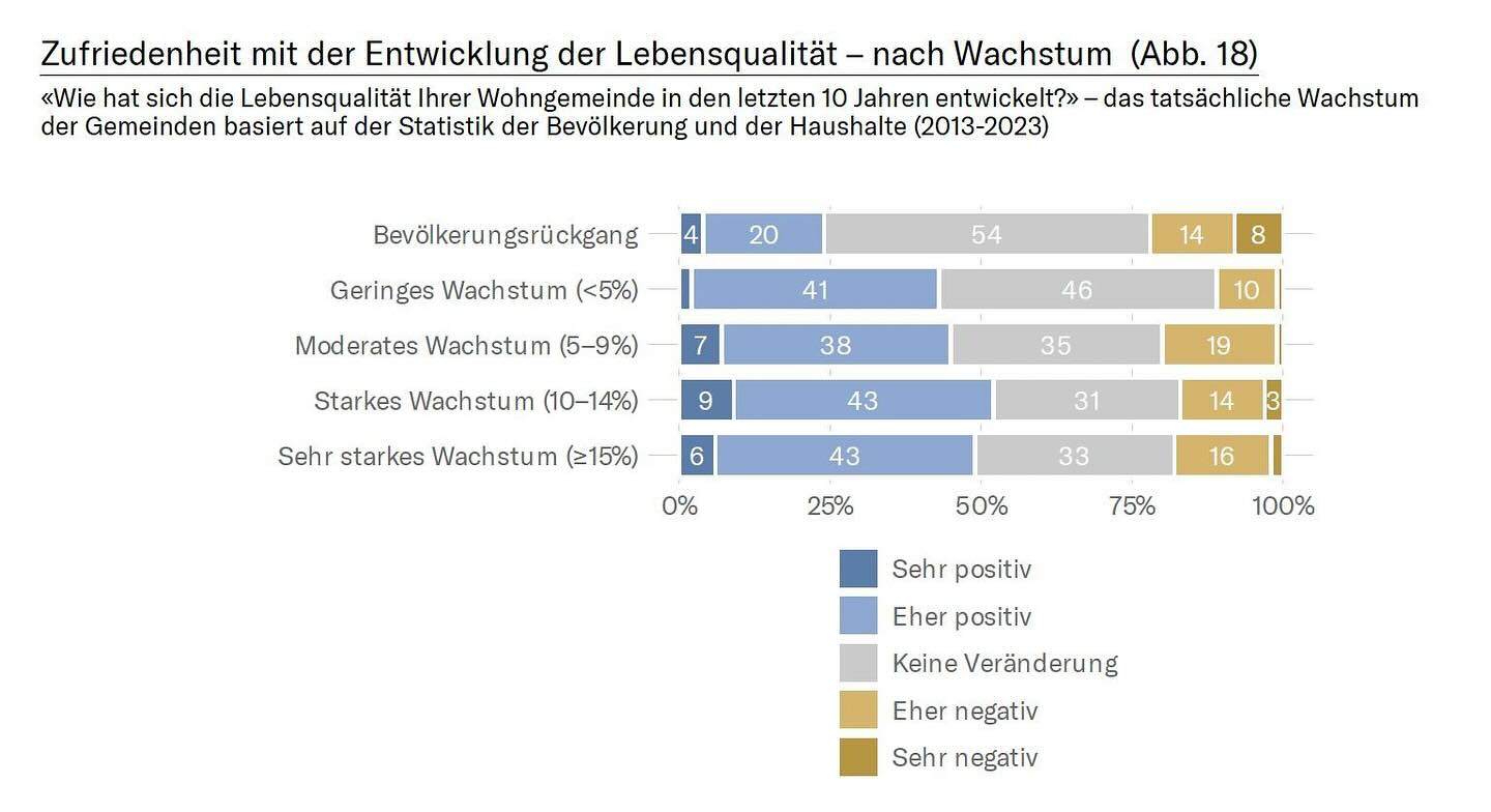 Zuwanderung macht glücklich – das sage nicht ich, das sagt die Schweizer Bevölkerung. In einer neuen Umfrage wurden die Menschen in der Schweiz gefragt, wie sich die Lebensqualität in ihrer persönlichen Einschätzung an ihrem Wohnort in den letzten zehn Jahren entwickelt hat. Das Resultat: Die Lebensqualität ist aus der Sicht der Menschen (nicht irgendwelcher Statistiken) dort stark gestiegen, wo die Bevölkerung stark gewachsen ist. Negativ wird die Entwicklung der Lebensqualität dort beurteilt, wo die Bevölkerung schrumpft. Dieses Ergebnis ist fast spektakulär, angesichts der Dauerkampagne von Medien und gewissen Parteien, die die Zuwanderung für jeden umfallenden Kartoffelsack verantwortlich machen wollen.